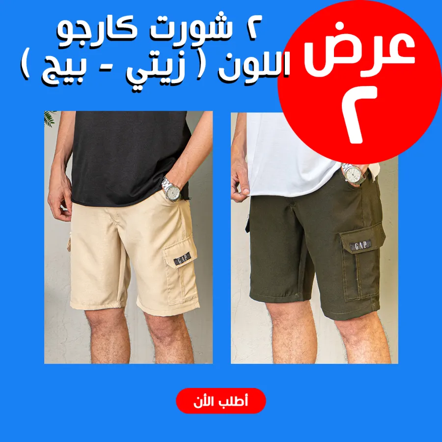عرض 2 شورت كارجو اللون ( زيتي - بيج )